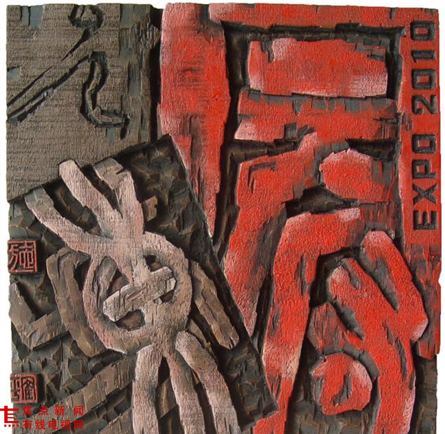 书法写意的潜心创作,又推动了施鹤平对现代刻字艺术的进一步探索。他将宣纸上的平面笔墨悉心改造后,巧施于木板进行二度创作,将自然之趣汇成艺术语言,塑造木板上的三维书法。二十多年来,施鹤平创作实践与美学理论并重,已臻炉火纯青,成果颇丰。