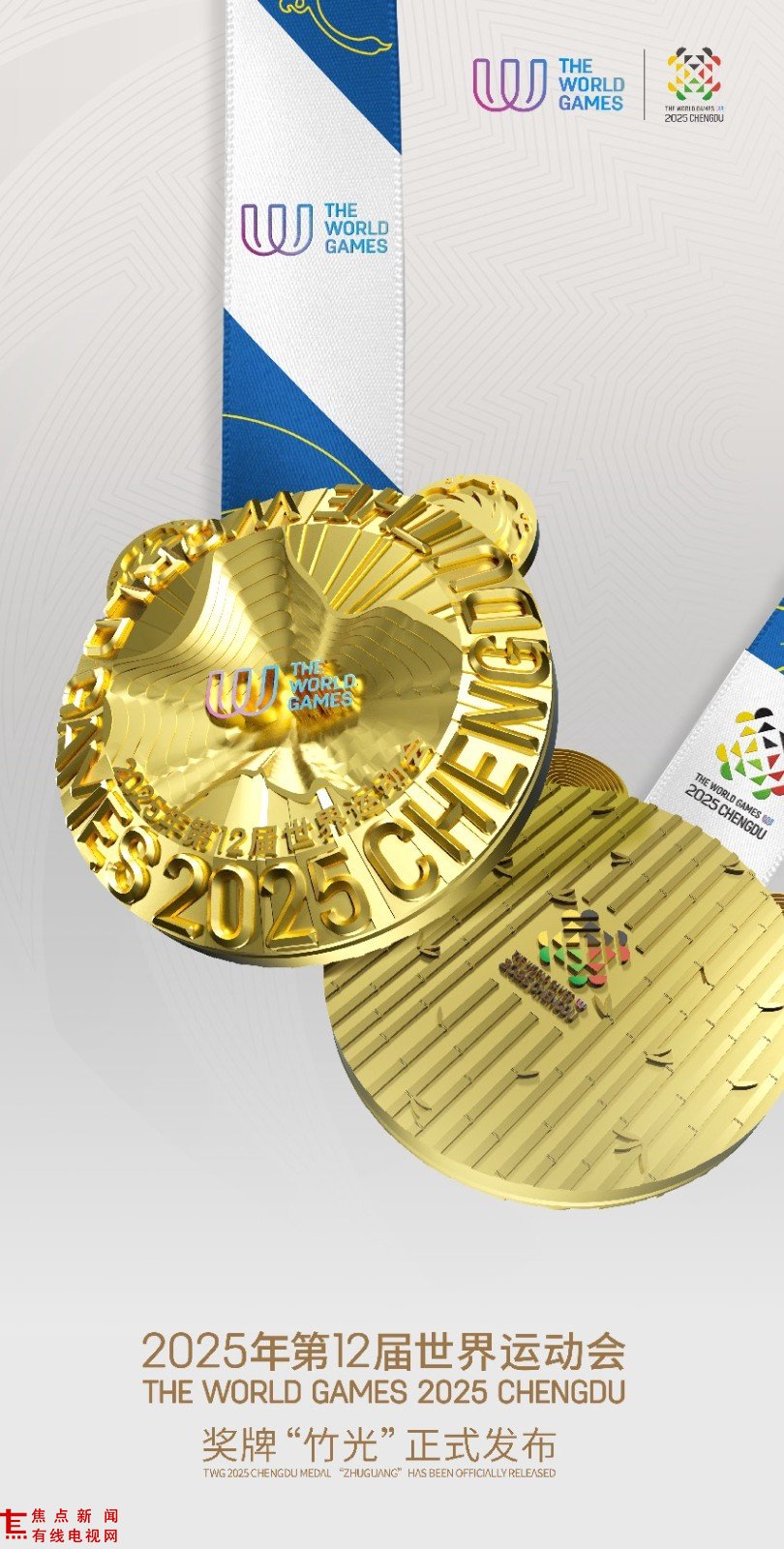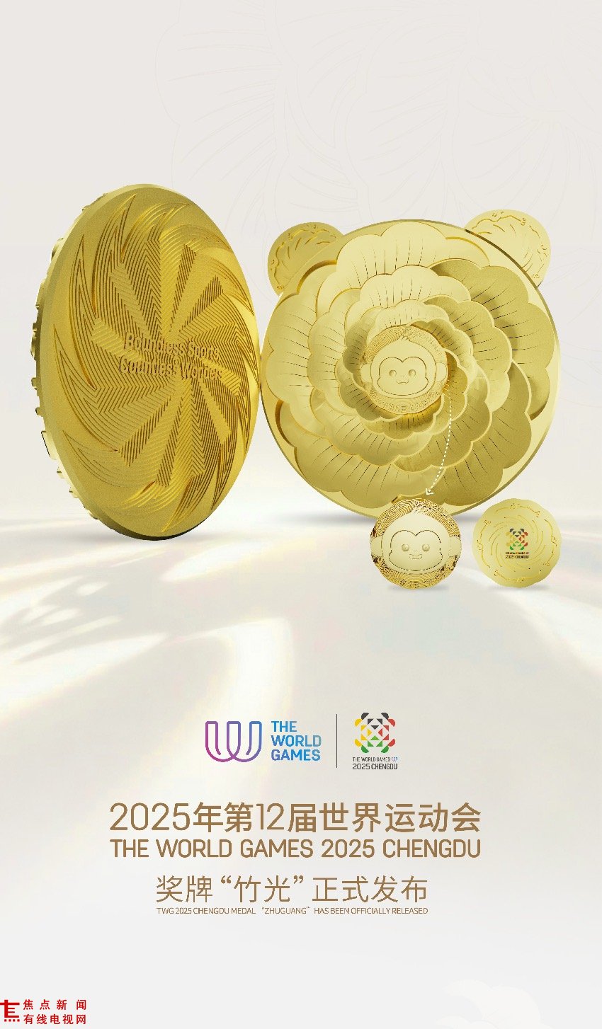 人民网成都6月19日电 (记者朱虹)当胜利的光芒与分享的温暖相遇,2025年第12届世界运动会(以下简称“成都世运会”)奖牌“竹光”给出了最动人的诠释。6月19日,承载着独特“分享”理念与深厚敬意的赛事奖牌——“竹光”正式亮相! 这枚命名谐音“逐光”的奖牌,不仅是对运动员拼搏荣光的加冕,更旨在分享喜悦,致敬荣耀背后每一滴辛勤的汗水,感谢胜利背后每一份坚定的支持。 文化铸魂,致敬拼搏荣光 “竹光”奖牌的设计,深深植根于中国文化底蕴与成都独特魅力。奖牌正面,国际世运协会徽居中醒目,赛事中英文名称环绕呼应。巧妙融入的太阳神鸟纹饰,与暗合城市轮廓的流动凹凸线条,在底部营造出层层光芒,既彰显中华文明、巴蜀文化的璀璨历史,更象征着运动精神永恒闪耀。