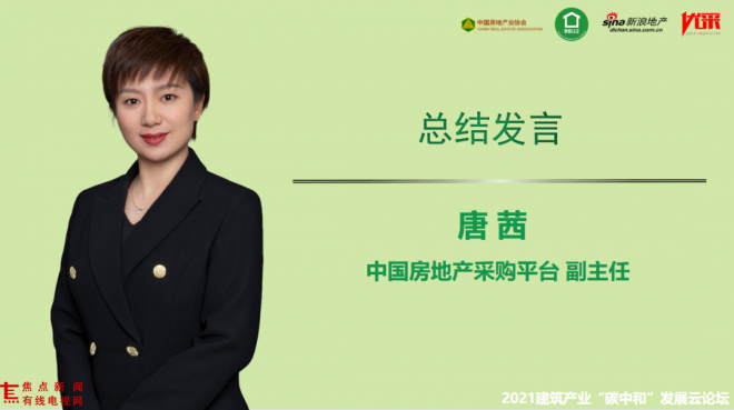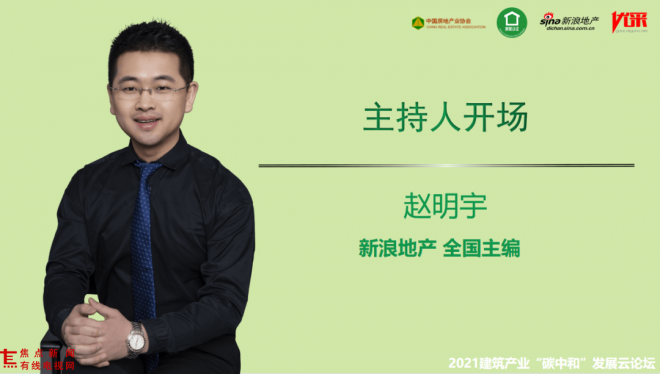 新浪地产全国主编赵明宇主持会议。主持人赵明宇开场道“众所周知,“碳中和”已成为当下热议的焦点话题,在近日发布的“十四五”规划和2035年远景目标纲要中明确指出,推动能源清洁低碳安全高效利用,深入推进工业、建筑、交通等领域低碳转型。据可统计数据显示,2018年全国建筑全过程碳排放总量为49.3亿吨,占全国碳排放比重的51.3%。而“碳中和”的时代大背景下,建筑行业作为碳排放大户的低碳转型成为了社会各界的普遍共识。而事实上,部分开发企业已经开辟绿色发展路径,抢占技术制高点,同时,配套供应链企业也在产品研发、生产、施工等全流程角度探寻减碳的新思路。”