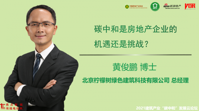 北京柠檬树绿色建筑科技有限公司总经理、博士黄俊鹏分享《碳中和是房地产企业的机遇还是挑战?》的主题演讲。黄俊鹏博士的演讲内容包括:1.房地产行业的碳排放和碳管理为什么很;2.房地产企业碳排放现状;3.房地产企业碳中和路径;4.碳中和将重塑房地产企业竞争力;5.房地产企业如何参与科学碳目标倡议;6.房地产企业碳审计、碳盘查。