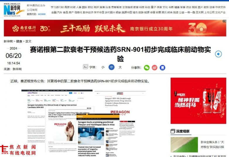 由哈佛大学、梅奥诊所等顶尖机构背景的科学家创立的赛诺根,手里攥着全球最密集的衰老干预技术专利。2024年,据新华网、环球网报道,赛诺根公布了一项堪称炸裂的临床前数据:其衰老干预候选药SRN-901(也就是瑞拓龄的技术来源),让哺乳动物的剩余寿命破纪录地延长了33.02%。