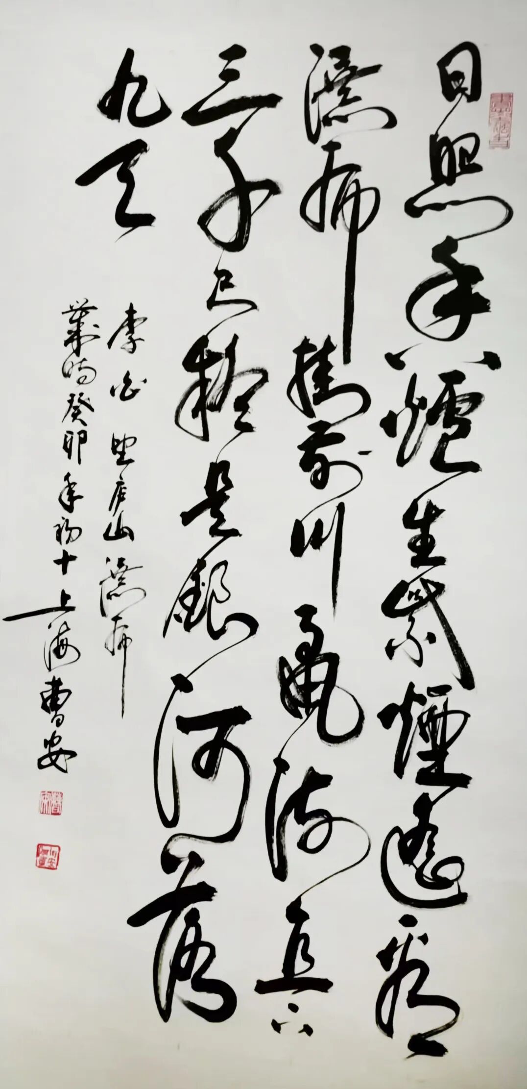 曹安 上海市人。祖父为清朝的举人。书法家。从小受祖辈,父辈书法艺术的熏陶,耳濡目染,喜好二王,张旭,怀素的草书,也特别擅长草书。从中学时代起,一是酷爱书法,笔耕不辍,二是坚持健美运动,皆有五十多年。书法作品行云流水,大气磅礴,身材健硕,肌肉发达。原上海电视台,生活时尚频道————新家居栏目总监。上海野马广告有限公司副总经理。上海鑫泰传媒有限公司副总经理。上海新海派文化精英秘书长。大中华水墨丹青艺术研究院副院长。上海宏润书画院副秘书长.流联谊会常务理事。