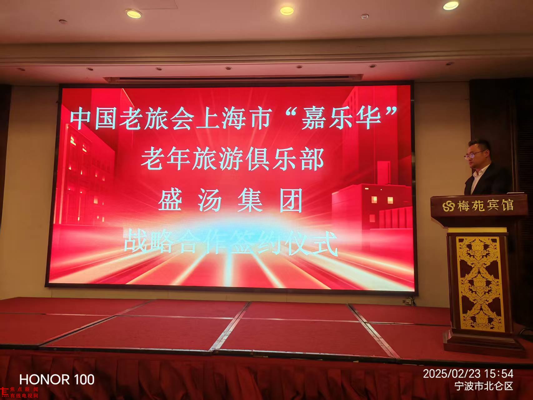 焦点新闻有线电视网上海讯马幼麟 谢良宏 沈学定 高耀祥 刘壮毅等 摄影报道2月23日雨过天晴,春意盎然。中国老旅会上海市嘉乐华老年旅游俱乐部与宁波盛汤集团战略合...
