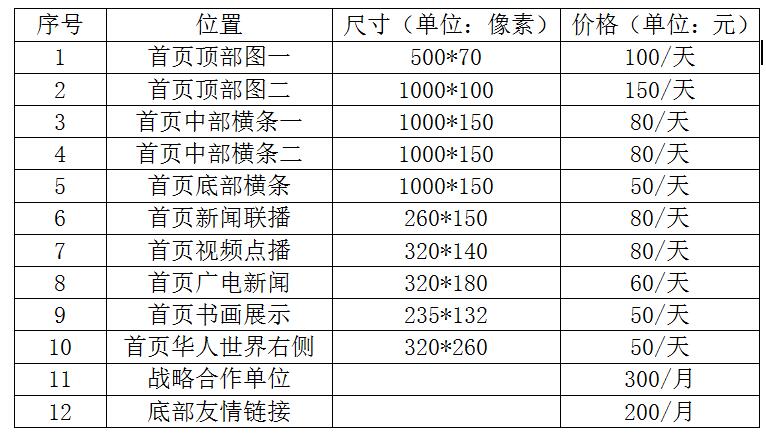 中国焦点新闻网广告位报价(http://live.7ve.cn/)报价有效期:2017年3月-4月序号位置尺寸(单位:像素)价格(单位:元)1首页顶部图一500...