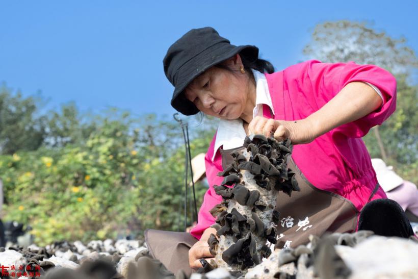 随着气温回暖,池州市东至县胜利镇先进村黑木耳基地里一朵朵鲜嫩的黑木耳长势喜人,二十余名群众正在忙着采摘黑木耳,整个基地一片忙碌。采摘黑木耳。东至县委宣传部供图小...