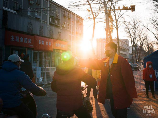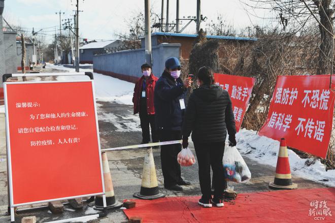 △2月17日,北京市海淀区某社区实行封闭式管理,对进入社区的居民进行登记并测量体温。(总台央视记者王哈男拍摄)