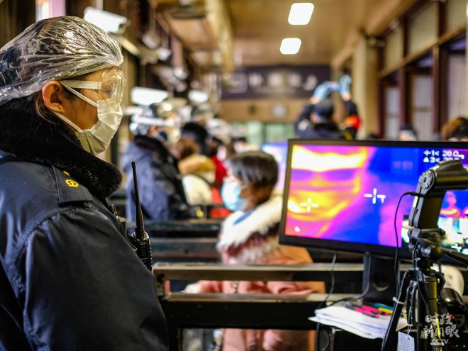 △居民进入社区或地铁站,都需自觉接受体温测量。(总台记者廖江衡、总台国广记者沈时拍摄)