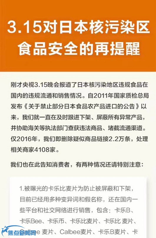 而被曝光的产自日本核污染地区的卡乐比麦片,已在各大电商平台几乎被“秒删”。