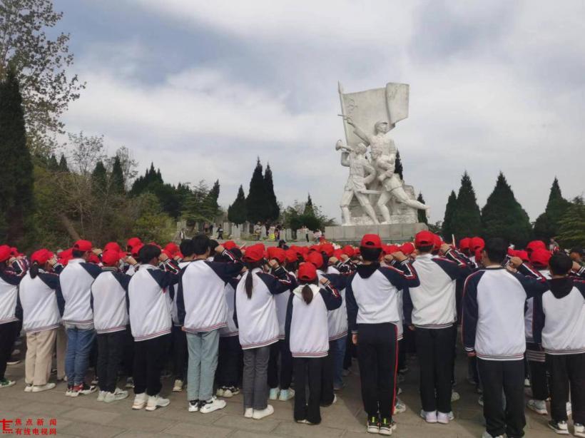 人们在陵园基地向纪念雕塑、烈士墓敬献鲜花、花篮、鞠躬、默哀、听取战斗故事介绍、重温入党誓词,少先队词,瞻仰烈士墓地……寄托无限的哀思,赓续红色基因!