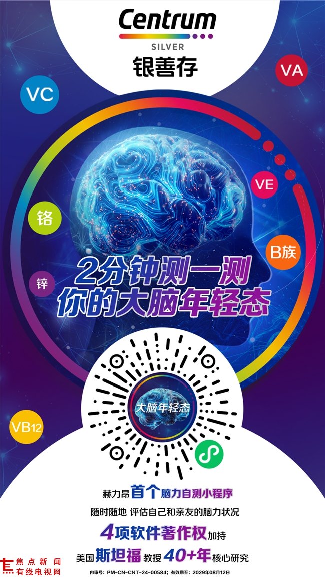 “我们每个家庭未来都可能存在有认知障碍的人。银善存希望通过‘大脑年轻态测试’唤起更多人尽早重视自己和亲友的大脑健康,定期筛查潜在认知健康风险,坚持每天服用复合维生素,用人人可及的方式维系大脑健康,提振健康寿命。”贺亚军女士解释道。