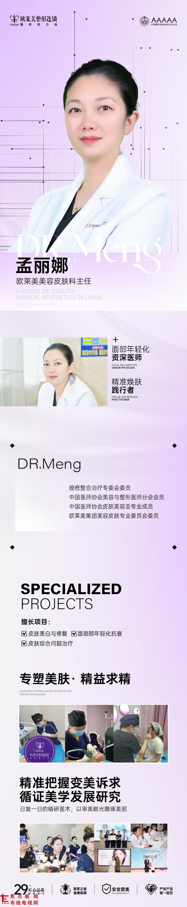 焦方露主任|“皮肤是有记忆的,每一次治疗,每一次护理,皮肤都会留下痕迹。”焦方露作为欧莱美美容皮肤科主任,直接负责大超炮的临床质控。“从皮肤检测数据解读,到治疗方案的动态调整,从术后反应的及时跟进,到长期维系的科学指导——我们交付的,不仅是技术的精准,更是让每一个人感受到:你的皮肤,被认真对待。”
