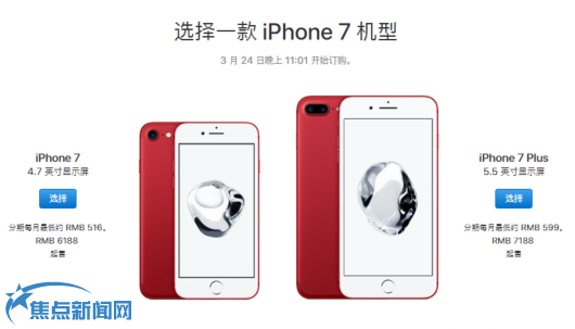 苹果发布红色特别版iPhone7 3月24日起发售